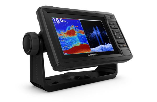 De in zonlicht leesbare kaartplotter met 6” touchscreen is voorzien van een beugelsteun met snelontgrendeling en een transducerbundel met UHD-scansonar en traditionele CHIRP sonar.